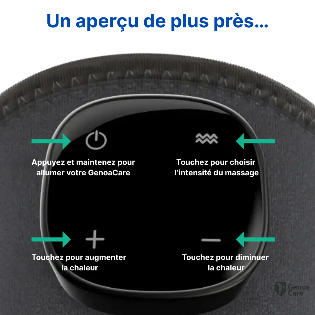 Laissez GenoaCare travailler pour vous : chaleur, massage et soulagement ciblé en quelques minutes, directement depuis chez vous.